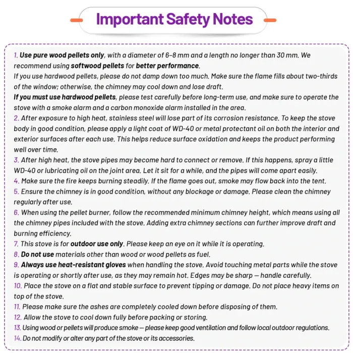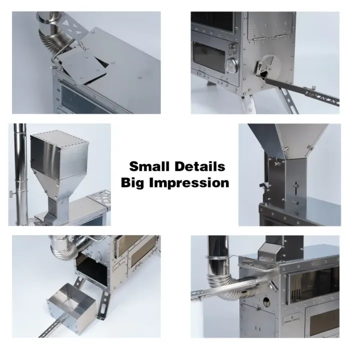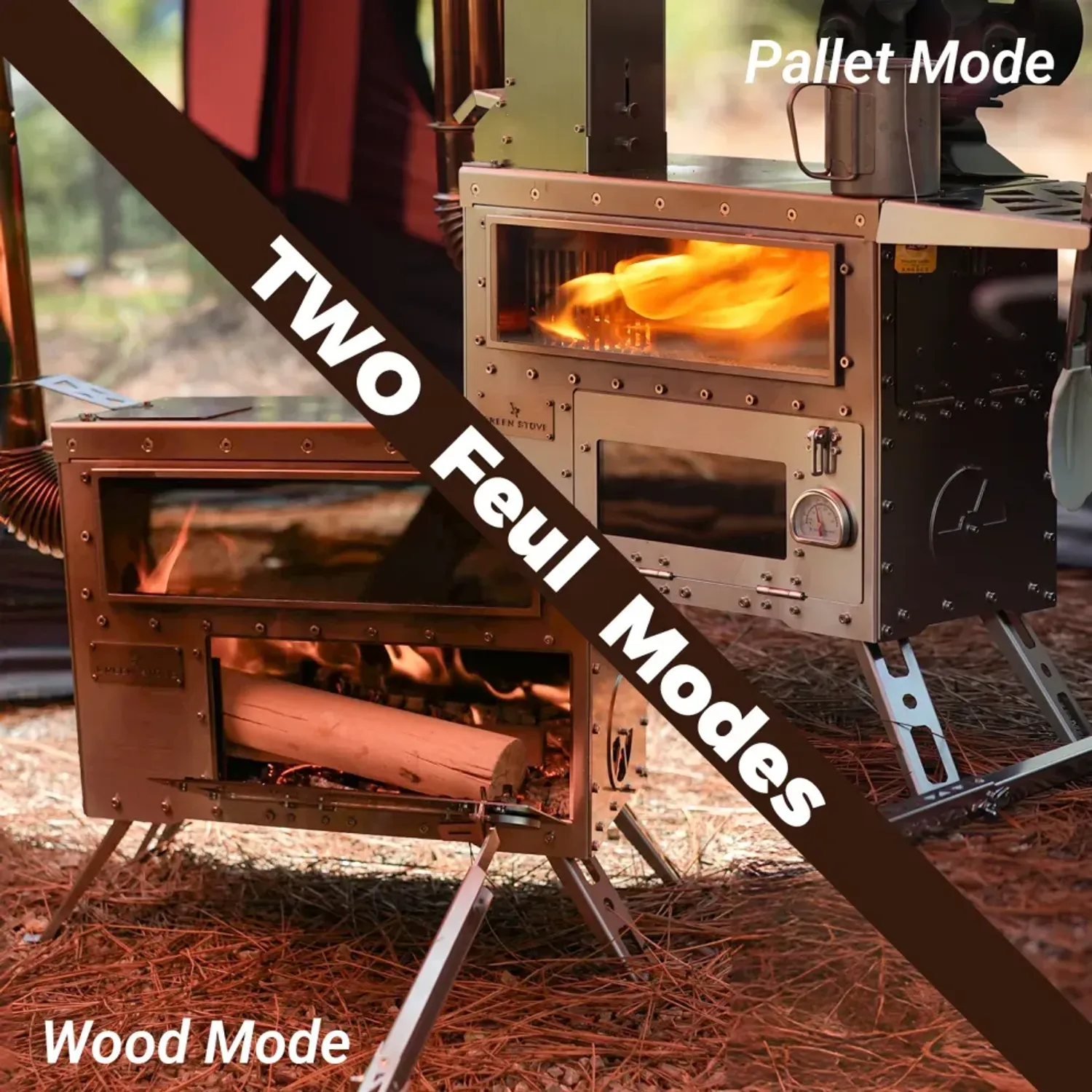 🪵 3. Модоор галлах боломж (Wood Burning Capability) Зөвхөн пеллетээр хязгаарлагдахгүй. Хэрэв түлш дууссан эсвэл ойр орчимд гишүү мод ихтэй газар байвал пеллетийн савыг салгаад энгийн зуух шиг модоор галлах бүрэн боломжтой. Энэ нь хээр гадаа түлшгүй болох эрсдэлээс таныг хамгаална.