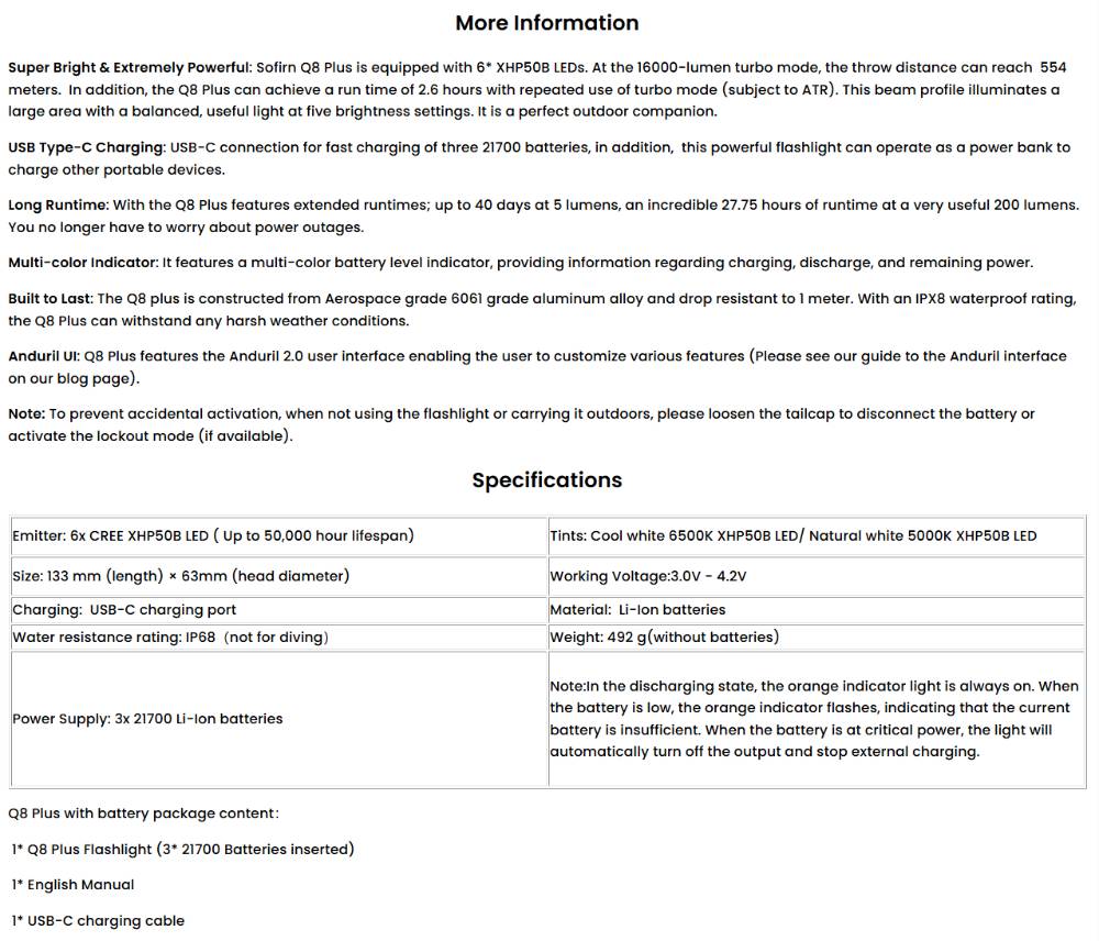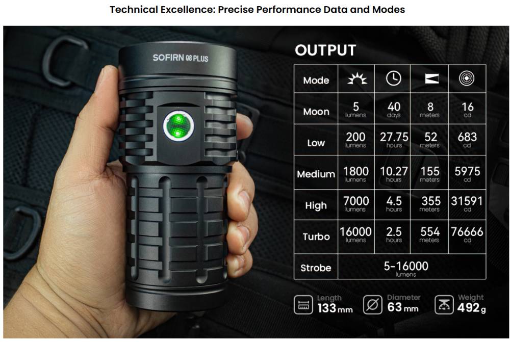 Sofirn Q8 Plus нь өндөр гүйцэтгэлтэй, "ундааны лааз" хэлбэрийн авсаархан атлаа асар хүчирхэг гар чийдэн юм. Энэхүү загвар нь шөнийг өдөр мэт гэрэлтүүлэх чадвартай тул хөдөө хээр аялах, эрэн хайх аврах ажиллагаа болон ахуйн хэрэглээнд төгс тохирно.